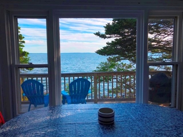 Easy going summer spot with a view of Blue Hill Bay, Swans Island, Isle Au Haut, and beyond. Open studded home with living room with fireplace, dining area with picture water view window, kitchen, bedroom with queen bed, and full bath. Upstairs is a sleeping loft divided into three areas without doors with a double bed, 2 twins, and 1 built-in bunk with twin mattress that overlooking the living room. TV for DVD, CD PLAYER, MW, FIREPLACE, DECK, CHARCOAL GRILL. No heat, no phone.